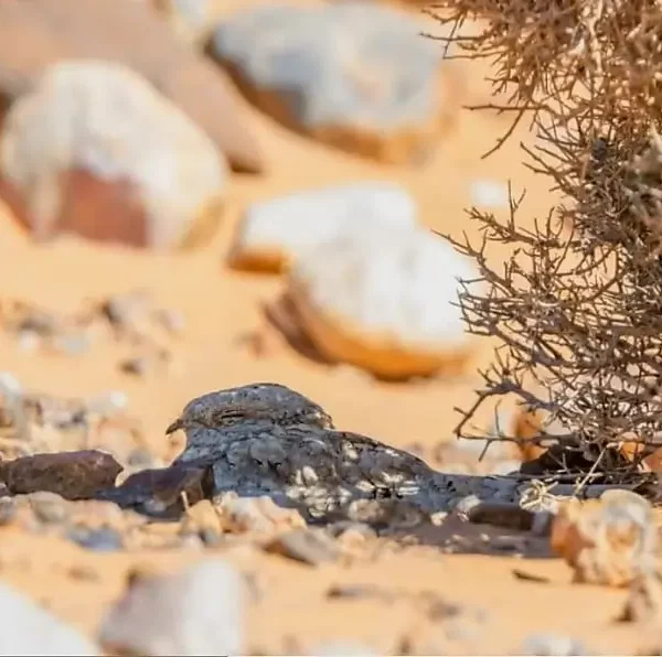 The Egyptian Nightjar belongs to the family Caprimulgidae, a group of nocturnal, insectivorous birds adapted to life in open, arid environments. Compared with other nightjars in Morocco such as the European Nightjar (Caprimulgus europaeus) or the Golden Nightjar (Caprimulgus eximius)—the Egyptian Nightjar is paler, quieter, and even more specialized for desert living.